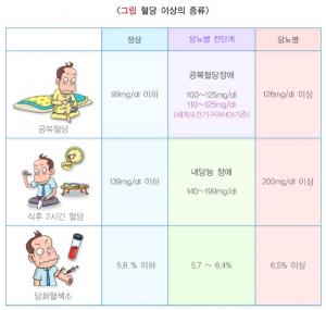 당뇨병은 유전적인 결함으로 인해 나타날 수 있고 췌장 수술, 감염 등으로도 일어날 수있다고 합니다.혈당 수치가 공복에는 126이상, 식사 후 2시간에는 200이상일 경우 당뇨라고 하며 고혈당으로 인해 여러 증상이 발생할수 있다고 합니다.