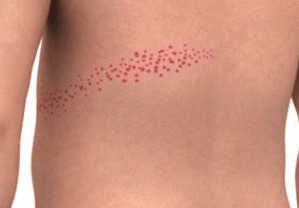 본격적으로 통증 나타나기 전 발병 3~4일 정도 이다음에는 피부에 붉은 반점이나 물집이 나타나게 됩니다. 폭 5cm 내외의 띠 모양으로 좁은 부위에 물집이 무리를 지어 나타나게 되며, 신체의 어떤 부위에도 발생할수 있지만 주로 등, 가슴, 얼굴, 허리
